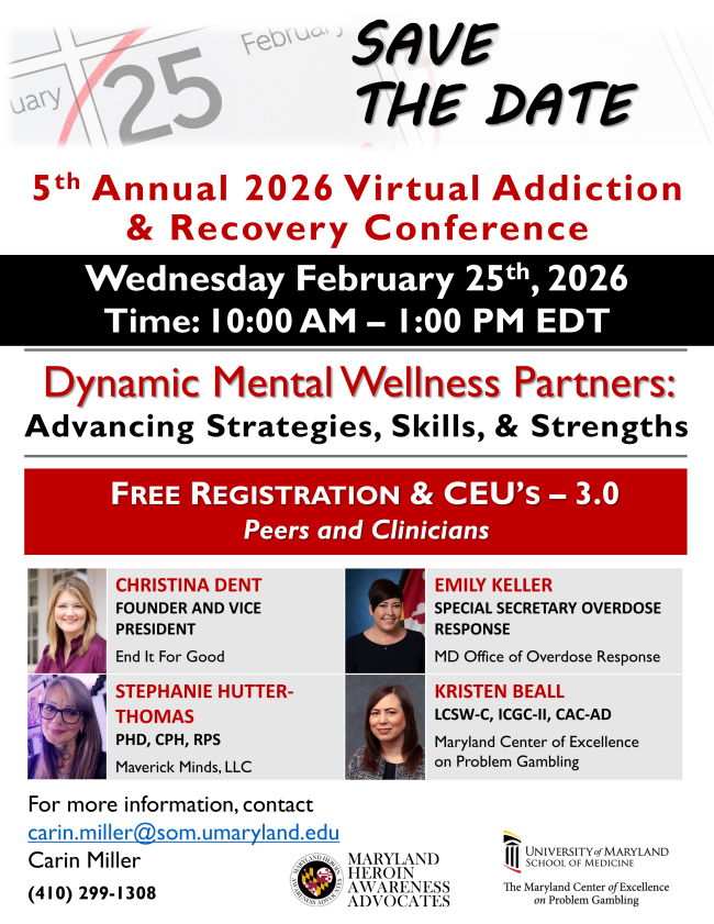 wed25feb10:00 am1:00 pm5th Annual 2026 Virtual Addiction and Recovery Conference (MD)